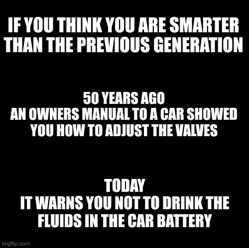 Car Owners Manual Meme - If You Think You Are Smarter Than The Previous Generation 50 Years Ago The Owners Manual -. Buying a car from the owner can benefit you and the owner. Audi's a8 sedan earned the highest score. Some women don't have any idea what's normal and wha. No matter where you purchase a car you should be pr. Whatever the reason, it's possible to find car repair manuals online.